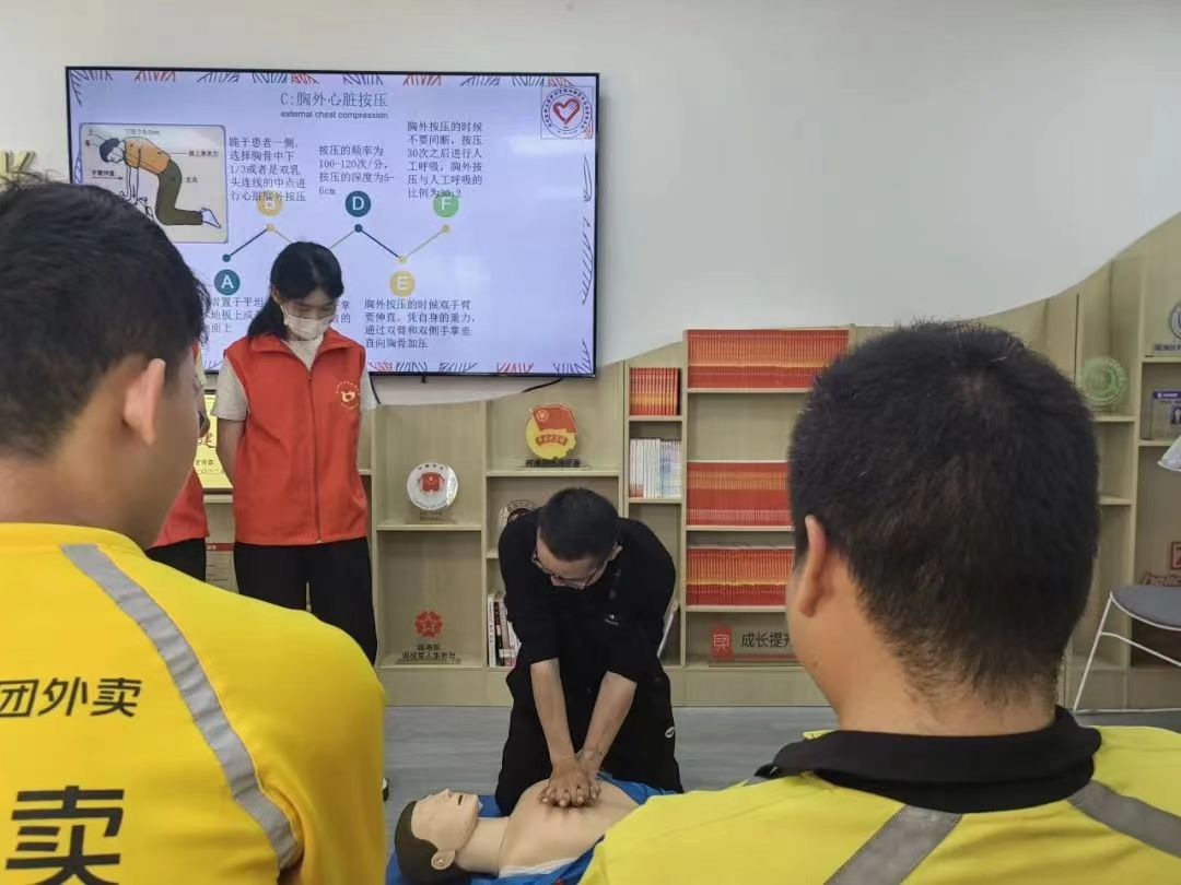 4月15日,taptap点点官网入口红十字搏时急救宣传志愿服务队在“瓯江红”商务区城市驿站开展了“急救骑士”培训活动,活动主要针对外卖员匆忙进食易导致呼吸道梗阻的现象和外卖员接触人群大的特点,围绕心脏骤停、心肺复苏术和海姆立克法三方面展开。其目的在于提高骑士们的急救意识,为“行走的救护员”的出现创造条件。