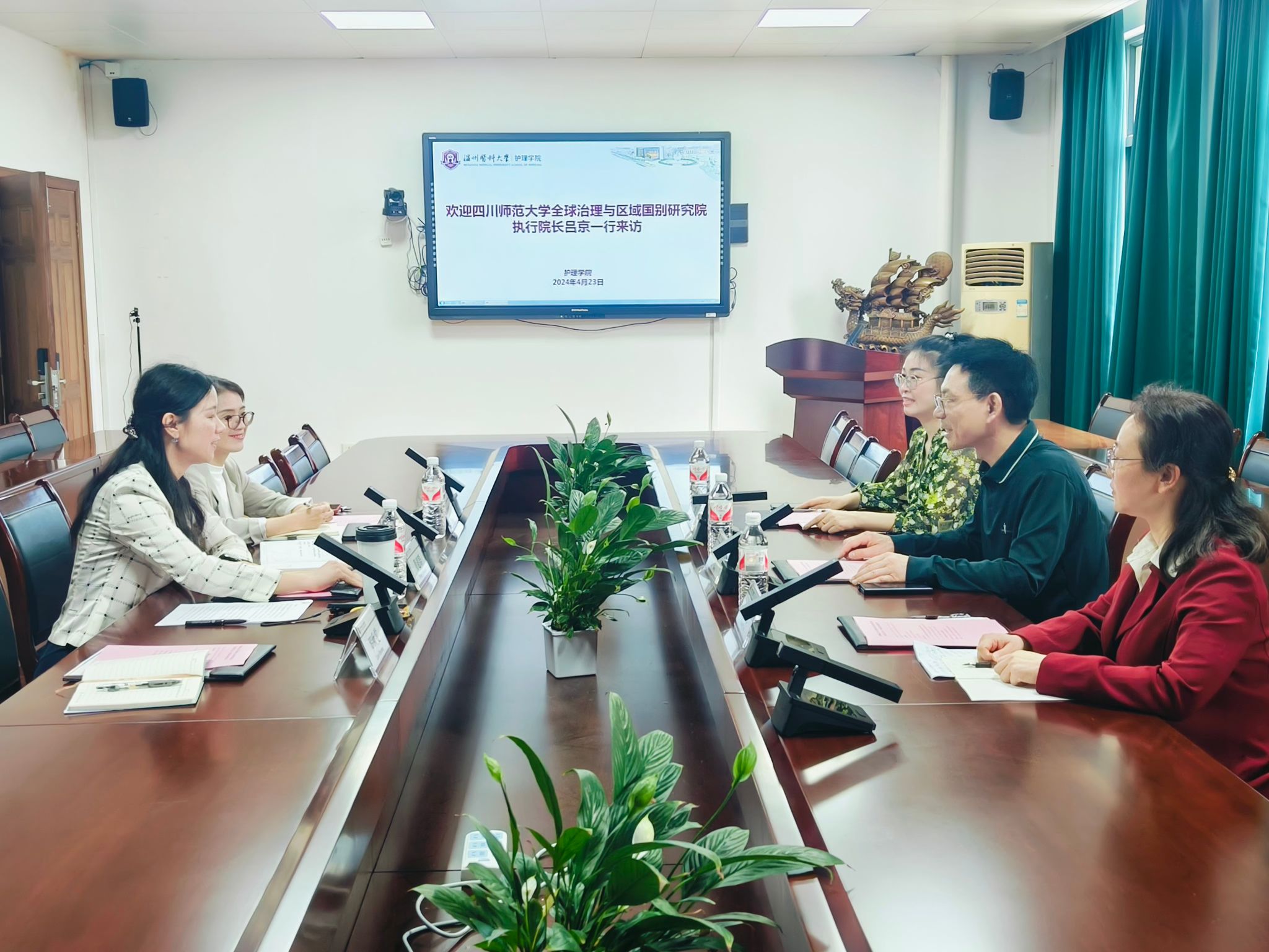 4月23日上午,四川师范大学全球治理与区域国别研究院执行院长一行来taptap点点访问交流。学院董超群副院长、朱晓玲老师及教学办相关老师参加会议。