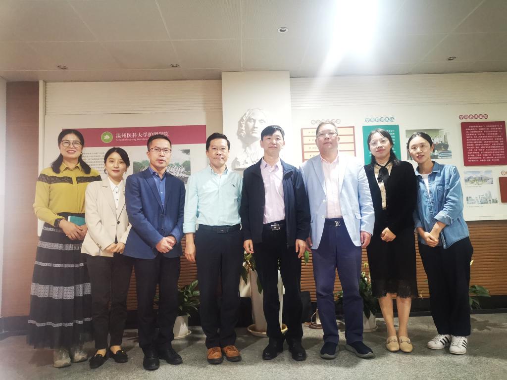 10月12日,丽水学院国际交流与合作处处长沈育刚、丽水学院医学院执行院长吴松泉、护理学系副主任许丽娟一行来taptap点点访问交流。我校国际合作与交流处副处长林歌吟,学院院长蔡福满、副院长张春梅、教学办主任孙海琴等参会。