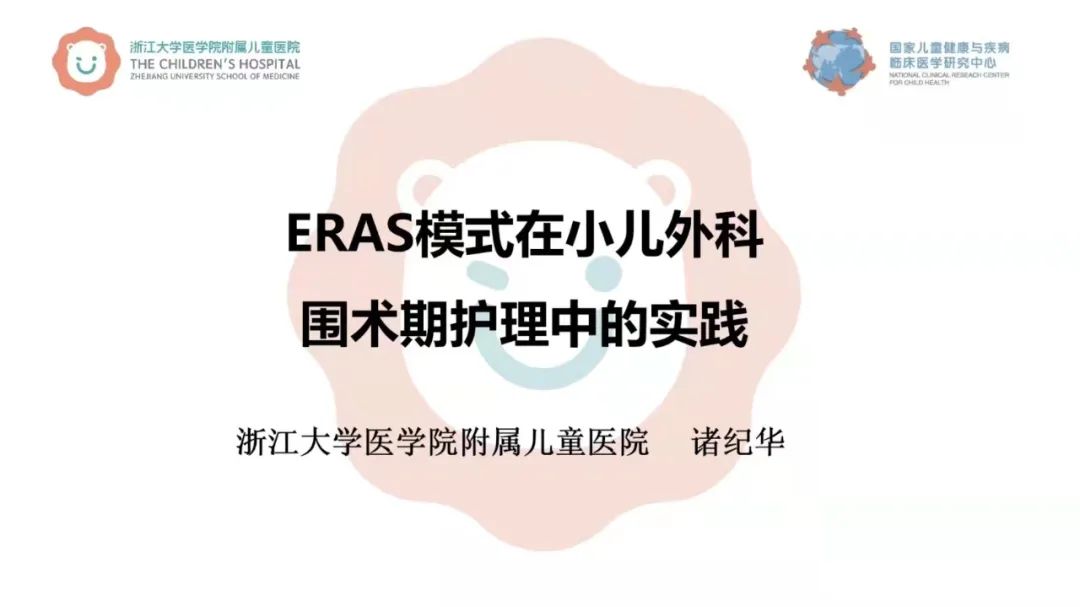 浙江大学医学院附属儿童医院护理部主任诸纪华作《ERAS模式在小儿外科围术期护理中的实践》专题讲座。她分享了从术前宣教、肠道准备、饮食管理、麻醉方式、预防使用抗生素、手术方式改进、术中体温管理、围术期液体管理、疼痛和导管管理、术后进食及术后活动等多个方面实施ERAS在小儿外科的经验。通过术前、术中、术后的治疗过程中MDT下ERAS的应用,以数据研究为依据,完善治疗管理,推动了多学科参与的ERAS模式进展,为优化小儿外科围术期护理质量提供参考。