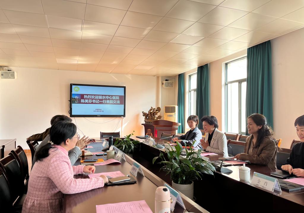 3月7日上午,丽水市中心医院党委副书记、副院长陈美芬,护理部副主任黄旭芳(主持工作)、护理部副主任朱虹、护理部副主任金肖一行四人来taptap点点访问交流。学院党委书记李旭东、院长蔡福满、副院长杨晔琴、教学办主任孙海琴、教学办老师杨定琪参会。