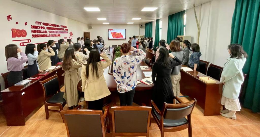 “我志愿加入中国共产党,拥护党的纲领,遵守党的章程,履行党员义务,执行党的决定......”现场,全体党员起立,举起右手,用铮铮誓言表决心。面对着鲜红的党旗,大家接受了一次思想的再洗礼和初心的再觉悟。