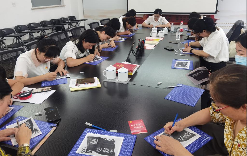 红色刻纸将本次主题党日活动推向了高潮。全体党员通过非遗技艺——刻纸的艺术形式,体悟中国共产党人的初心和使命,强化弘扬中国优秀传统文化的责任和担当。一张张红纸、一把把刻刀、一双双巧手,刻画出了飘扬的党旗,同时也将“为人民服务”深深地刻在了全体党员的心中。
