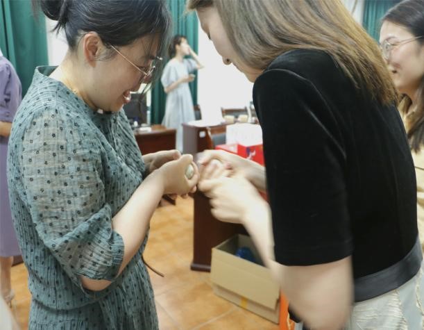 端午“粽”动员,巧手做香囊环节,老师们制作手工香囊,将对美好生活的期许装进香囊中,进一步感受传统端午文化的内涵和魅力。