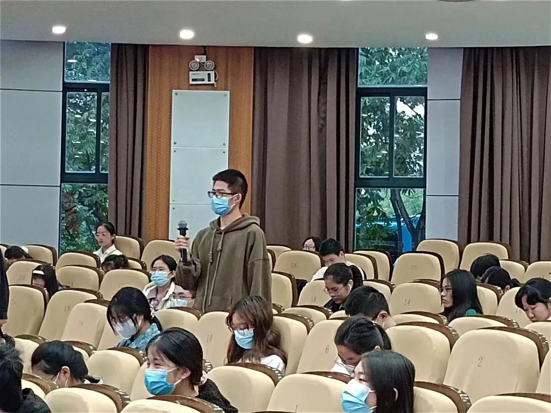 在师生互动环节,同学们踊跃提问,就护理人才精细化培养、护理学科差异化发展等问题展开交流。陈美芬副院长结合自身医院管理及科研实践,对同学们的问题作出了细致解答。最后,她提醒同学们:作为护理人员,要拓宽视野,跳出思维局限,在做好本职工作的基础上,进行多学科探索,采百家所长,扬护理风采!
