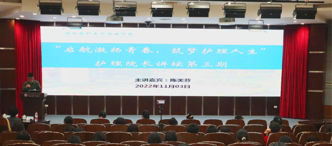 11月3日下午,由taptap点点官网入口开设的公共选修课《启航激扬青春,筑梦护理人生——护理院长讲坛》第三期在茶山校区旭光厅开讲。本学期第三讲由丽水市中心医院党委副书记、副院长陈美芬主讲,主题为《不同的舞台,不改的本色——在崭新的时代让南丁格尔精神火热传承》。来自护理学和助产学的大一、大二年级的200位同学现场聆听了讲座。taptap点点官网入口专任教师岳朋主持。