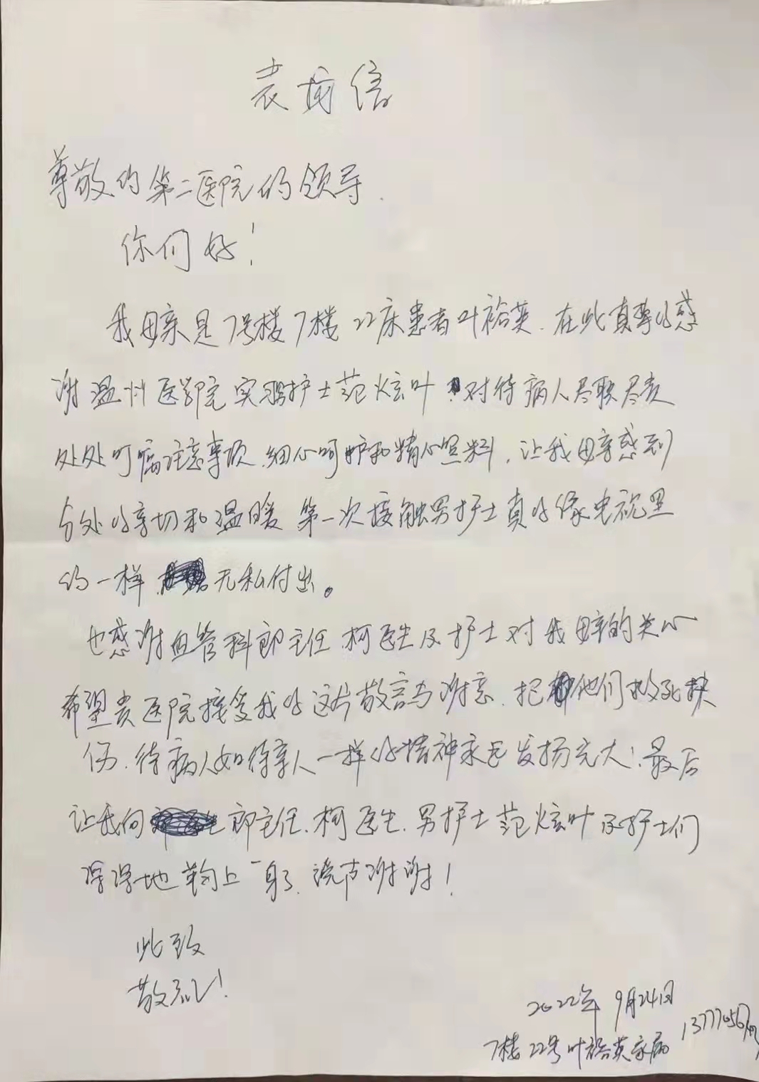 在经历了这样一件事后,我意识到,护理不仅要执行医嘱,更要处理好医患关系,帮助病人重获健康,而其桥梁,便是沟通。做好与病人的沟通,做好与病人家属的沟通,不单是需要我们有过硬的职业素养和临床技能,也要学会取得病人的信任,为病人解释好每一个操作的目的,让病人能够积极配合。我是这样想的,也是这样去做的。结束在血管外科的实习时,我受到了病人及家属的表扬,主动写了感谢信表示对我的肯定。