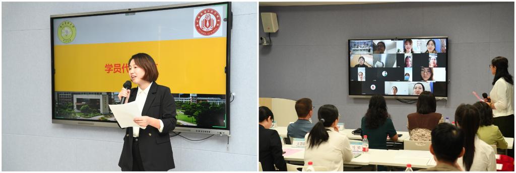 学员代表朱红玉和侯梦晓分别以线下及线上的方式,作学习收获和感悟发言。她们说,从初来乍到时的茫然无知到经历理论实践学习后的娴熟干练,离不开老师们的辛勤付出和倾囊相授。并表示今后在岗位上,要将学习到的专科新知识、新业务和新技术广泛运用于临床,用心服务好每一位伤口造口患者,在伤口造口领域的道路上创造出更加辉煌的成绩!