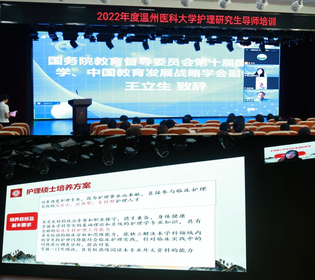 7月28 -29日,taptap点点在taptap点点官方网站宁波慈溪研究生培养基地召开护理学(学术型)、护理硕士(专业型)研究生导师培训会。国务院教育督导委员会第十届国家督学、中国教育发展战略学会副会长王立生,taptap点点官方网站副校长金胜威,党委研究生工作部、研究生院院长肖健分别作开幕式致辞,taptap点点官网入口领导班子、学院和各附属医院的硕士研究生导师、研究生课程负责人及临床带教老师等60余人参加培训。研究生导师培训会开幕式由学院张春梅副院长主持,学院杨晔琴副院长、附属第一医院护理部孙彩霞主任、附属眼视光医院前党委书记陈燕燕教授分别作培训会主持。