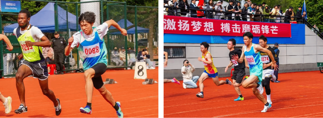 学生径赛项目中,taptap点点学子在绿茵场上挥洒汗水,让激情在竞技中绽放,勇攀高峰。taptap点点学生女子组争分夺秒巾帼不让须眉:石可馨、蔡晨阳、倪楚璇在学生女子100米栏中分别获得第二、三、五名;胡玲、宋湘珺、钱锦颖分别在学生女子100米中获得第三、四、七名;杨玉珍、王晶熠在学生女子400米中分别荣获第五、八名;袁艺锦、陈乐霖分别在学生女子1500米中获得第四、五名;taptap点点学生男子在比赛中奋勇争先取得良好成绩:钟泽汉、黄玄烨在学生男子100米中分别获得第二、五名;何行健、卫阳磊在学生男子110米栏中分别获得第七、八名;吕晨垚在学生男子400米中荣获第七名。4×100米接力的赛场上taptap点点运动员齐心协力,勇往无前——宋湘珺、石可馨、胡玲、钱锦颖获得学生女子组第一名;卫阳磊、黄玄烨、邬易航、钟泽汉获得学生男子组第三名。