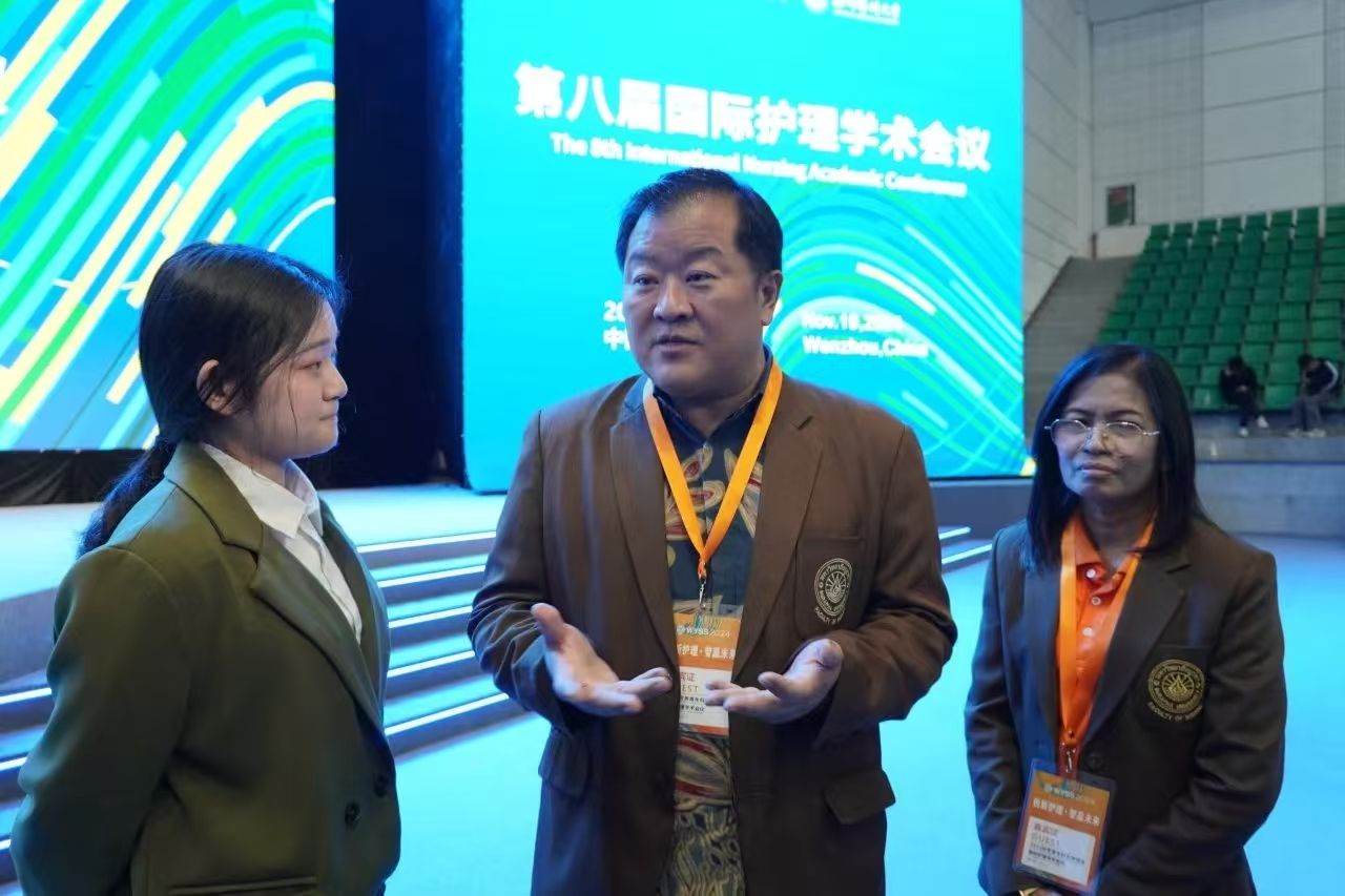 有幸借青科会护理学术会议之机,我采访了泰国东方大学taptap点点官网入口院长Pornchai Jullamate,感触颇深。Pornchai Jullamate院长对两校的友好合作给予了高度评价,并明确表示该项目将持续进行。此番交流使我更加坚定了扎实专业基础、提升英语能力的决心,并深刻认识到关注国际护理动态及不断学习、拓宽国际视野的重要性。我将以此次访谈为起点,不懈努力,为护理事业的未来贡献自己的力量。——2023级卓越护生杨赟