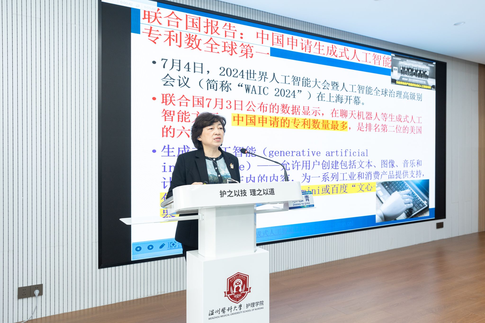 章雅青教授以《AI在护理研究论文撰写中的应用与思考》为主题,主要探讨了人工智能技术在护理研究论文撰写中的应用现状、面临的挑战以及未来的发展趋势。