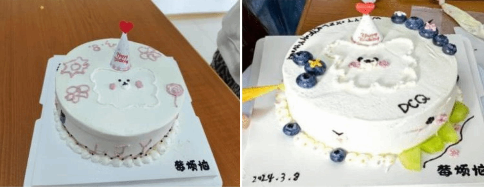 活动开始前,学院研究生会为同学们准备了丰富的蛋糕制作原料,如蛋糕胚、奶油、水果等。在简单介绍蛋糕DIY活动流程后,大家纷纷动手开始制作。活动中,同学们充分展示自己的才能,以独特的设计理念和风格,制作出了精美的蛋糕作品。一些蛋糕上点缀着美丽的鲜花和糖霜,而另外一些则以简洁流畅的线条进行装饰,每位同学的作品都充满了个性和想象力。