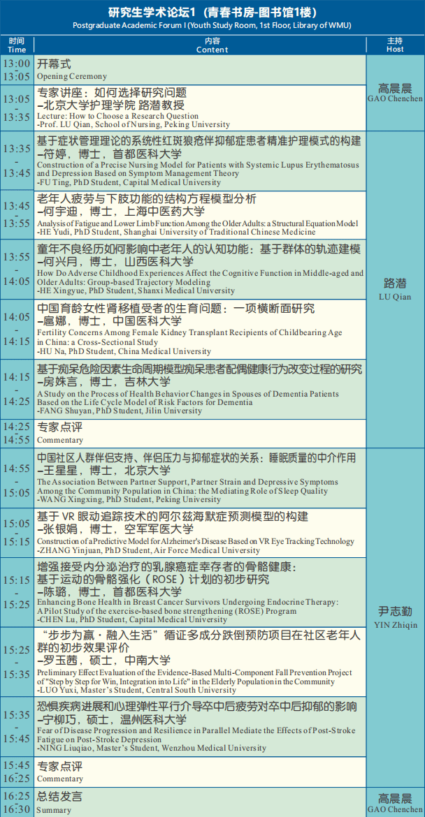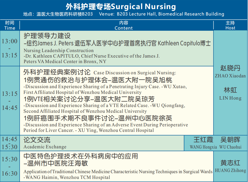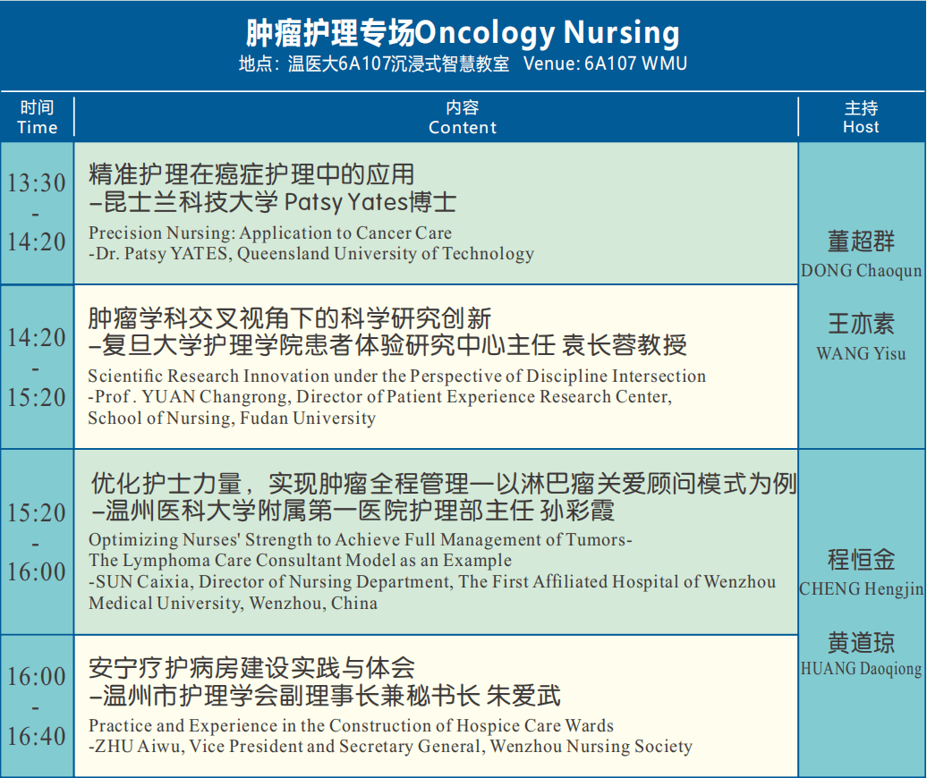 会议以“创新护理 智赢未来”为主题,邀请国内外知名护理专家以及⻘年研究生,分享在护理学科建设、护理教育、临床护理,尤其在老年护理、肿瘤护理、外科护理、伤口造口护理等方面的创新成果与经验。