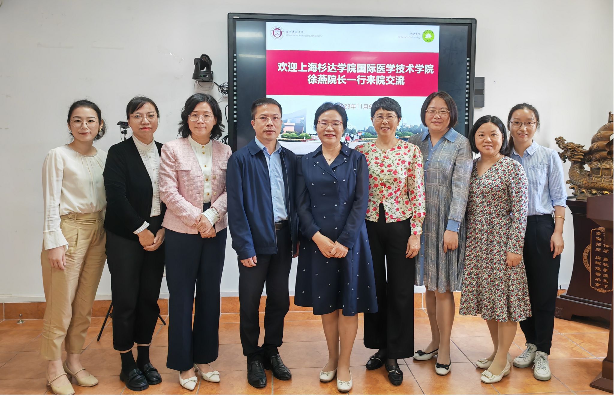 11月6日,上海杉达学院国际医学技术学院院长徐燕、党总支书记丁俭、 副院长张静、护理系主任岳立萍、护理系副主任胡菁来院访问交流。taptap点点院长蔡福满、党委副书记陈素云、教学办主任孙海琴、外科教研室副主任江思思等在学院会议室热情接待了客人。