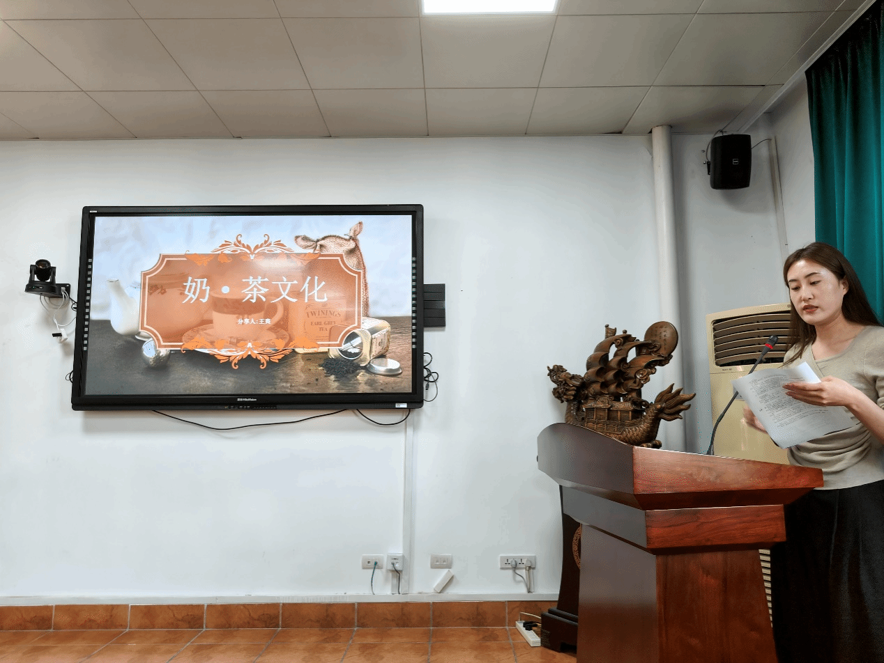 王爽老师分享了《奶·茶文化》,使大家对奶茶的起源及历史、现代奶茶的发展有了更加系统的了解。奶茶文化已逐渐演变为当代年轻人的“精神食粮”。王爽老师在分享的同时,告诫大家“奶茶虽好,也要谨记切莫贪杯”。