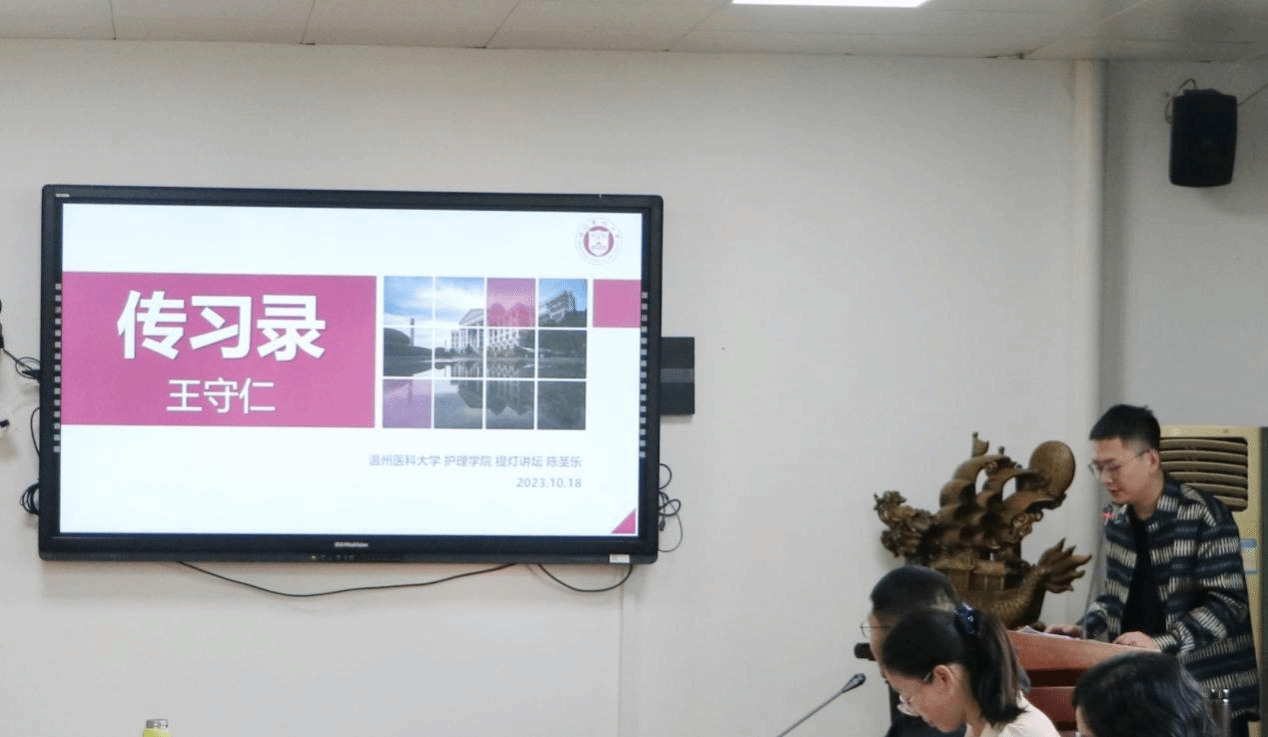 陈圣乐老师向我们介绍了王阳明的作品《传习录》。曾子曰:“吾日三省吾身。”王阳明的心学完整地继承了这一思想。从陈圣乐老师的讲解中,大家习得了自省的真正价值——是实现道德进步的关键,只有不断地反思自己的思想和行为,才能逐渐完善自身的道德品质。
