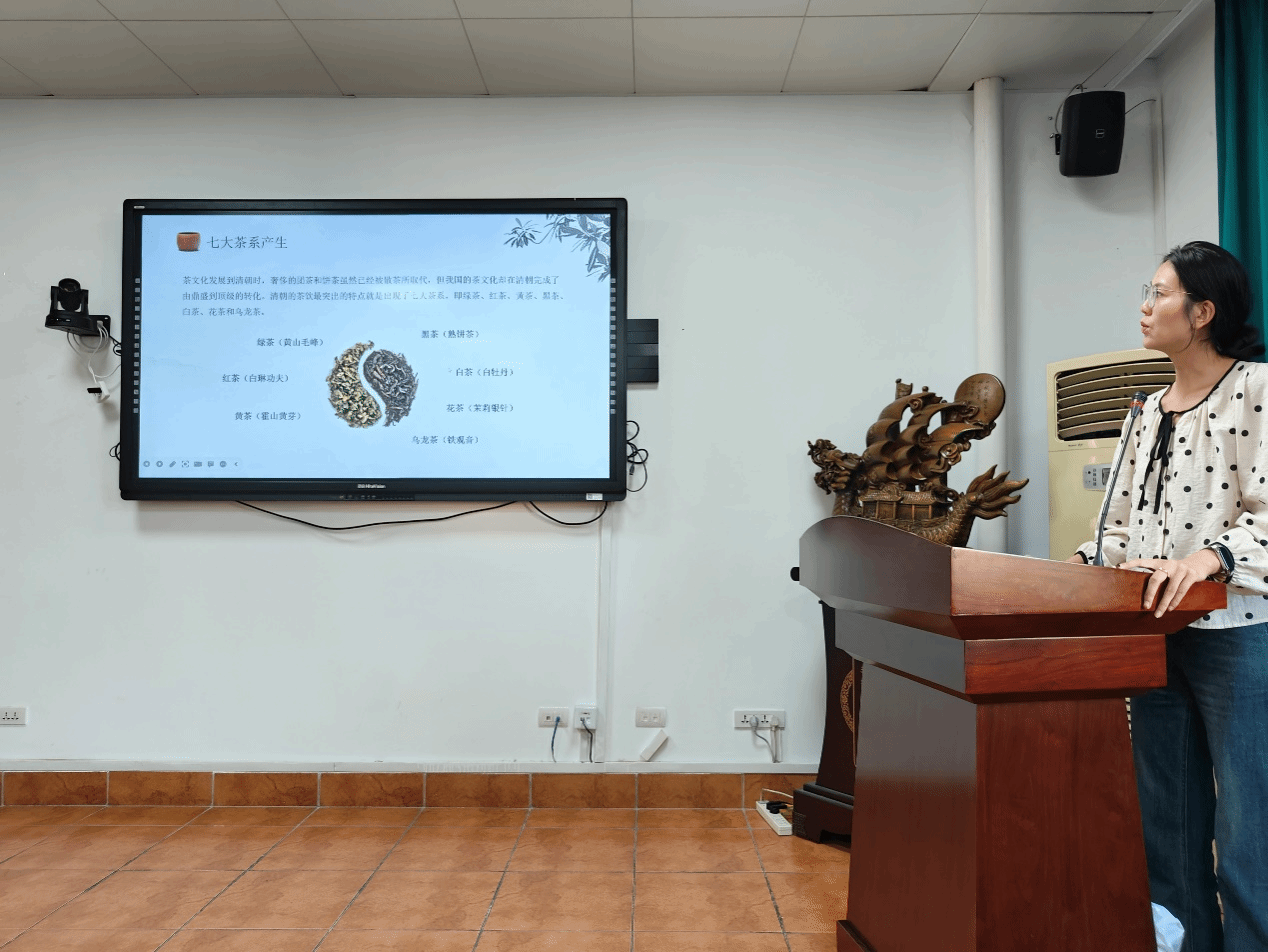 杜娅茹老师向大家分享了《中国茶的起源与历史》。从中国茶的渊源与盛行、中国茶的发展、中国人饮茶方式的演变及中国茶的主要分布区域四大方面娓娓道来,为大家绘制了一幅波澜壮阔的绝美中国茶文化画卷。