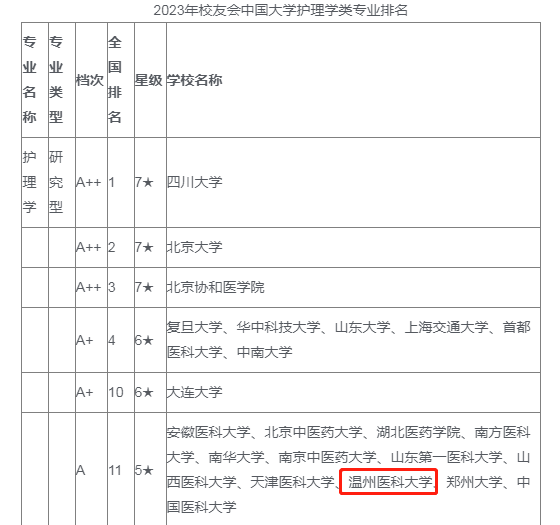 校友会中国大学一流专业排名是目前中国参评高校数量最多和参评专业规模最大的中国大学本科专业排名。该评价指标由学科水平、培养质量、师资水平、专业水平和专业影响等5大指标构成。在2023中国大学一流专业分档排名中,taptap点点护理学专业获评2023中国五星级专业(5★),专业档次A,位列护理学专业(研究型)排行榜并列第11位,进入世界知名专业、中国一流专业行列。助产学专业获评2023中国三星级专业(3★),专业档次A+,位列助产学专业(研究型)排行榜并列第3位,跻身中国区域一流专业行列。