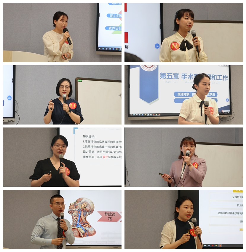 大赛以“上好一门课”为竞赛理念,分教学设计和课堂教学两个环节,来自14家临床教学医院的16名参赛教师同台竞技、各展风采。参赛教师结合专业特点和学科核心素养,围绕临床热点话题,以学生为中心,采取回归板书、自制模型、测试体验等多样化教学方式,巧用临床案例,通俗易懂、深入浅出地带动同学们联想思考,在帮助学生学习知识的同时启发学生的创新思维。选手们条理清晰地向现场评委阐述了对专业人才培养方案和课程标准的理解,用精炼的课堂语言、新颖的主题设计、灵活多变的教学方法,将护理精神和人文关怀融入课程建设、融入思政教育,展现出青年教师扎实的教学技能、进取的精神风貌和求实创新的教学精神。