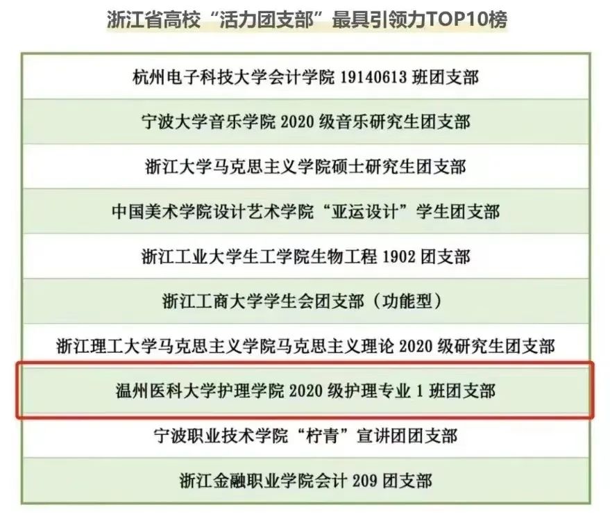 经团省委、省学联评审,taptap点点20护理1班团支部成功入选2022年度浙江省高校“活力团支部”最具引领力TOP10榜!(我校共有6个团支部入选)