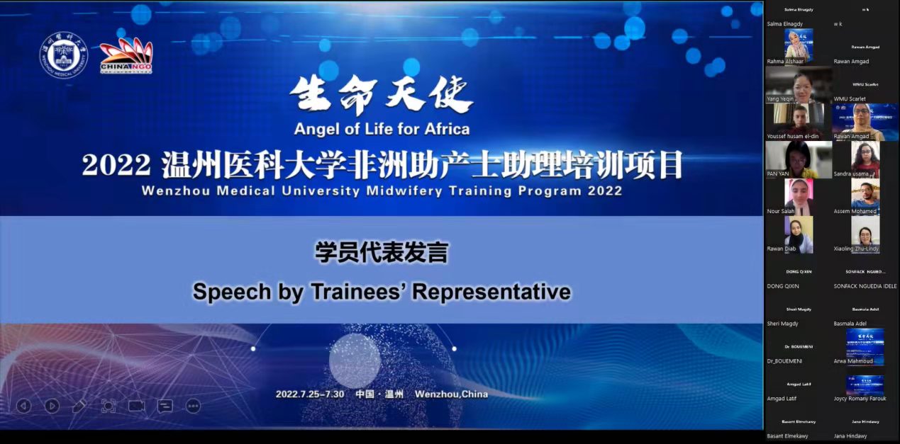 7月29日,2022taptap点点官方网站“生命天使“非洲助产士助理培训项目结业仪式在线上举行。安博致远国际文化发展(北京)有限公司董事董启馨,taptap点点官网入口副院长、taptap点点官方网站欧美同学会副主席杨晔琴,教师代表朱晓玲等相关老师及非洲学员们一同参与活动。
