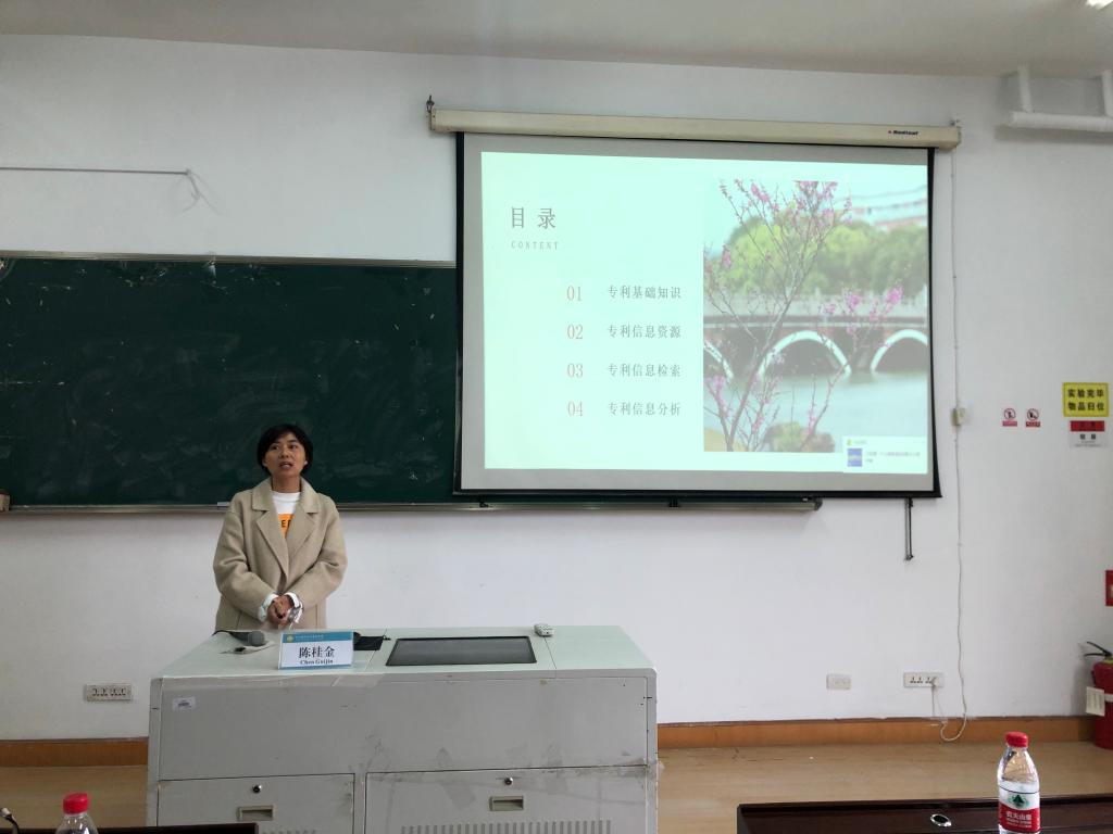 陈桂金就“专利信息检索”作主题演讲,她主要从专利基础信息、专利信息资源、专利信息检索与专利信息分析四个方面进行详细阐述。陈老师介绍的专利信息检索数据库、检索策略与相关的网站推荐,为教师及研究生准确高效地查找专利文献提供指导。研究生刘晶与沈歆怡分别就“中介效应分析之应用”和“专利申请转化”两个主题作分享。