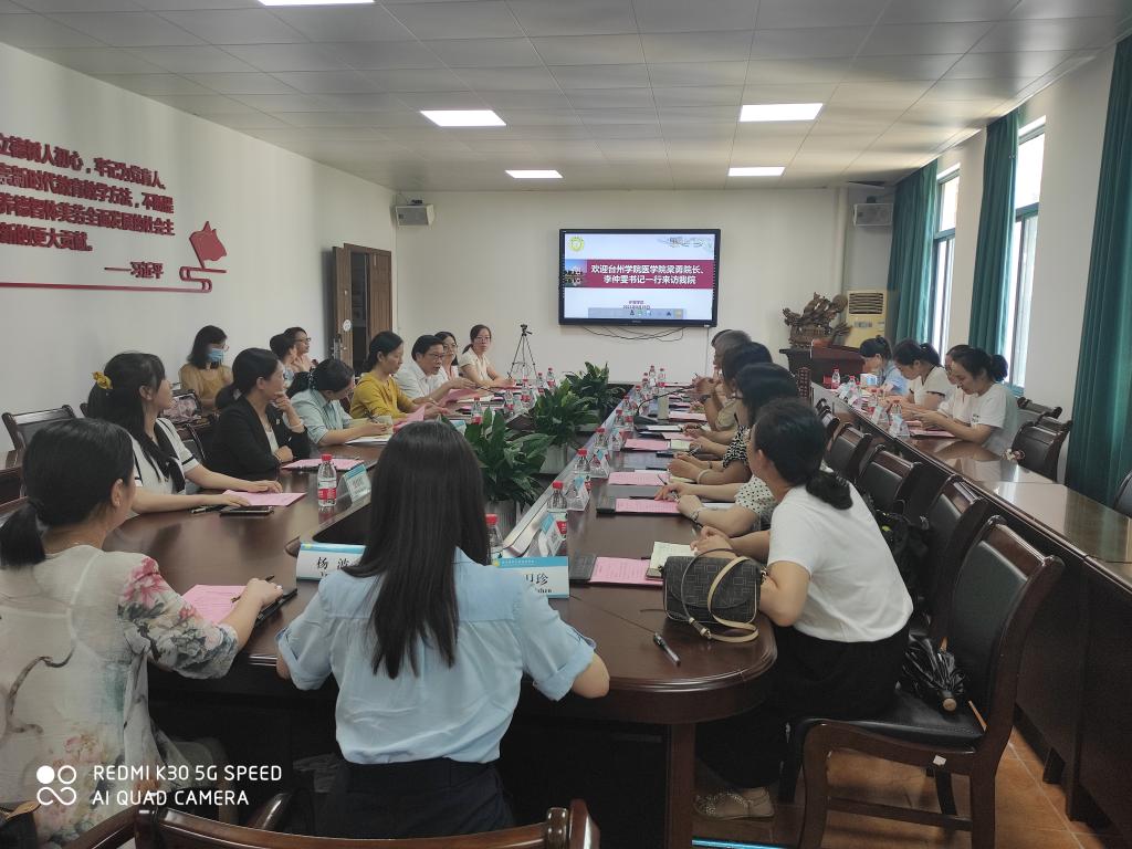 8月26日下午,台州学院医学院梁勇院长、李仲斐书记等一行17人来taptap点点交流。学校党委委员、教务处处长朱雪波,学院党委书记李旭东、副书记周恩红、副院长杨晔琴、各教研室、实验室主任,附属第一医院护理部孙彩霞主任、广化社区罗茶兰主任、教学办公室工作人员参加了交流会。朱雪波对台州学院一行表示了热烈的欢迎,交流会由李旭东主持。