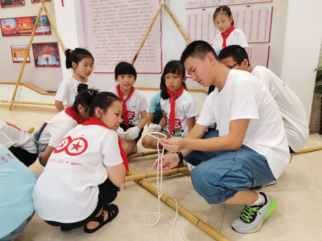 红领巾研学营是团温州市委将大学生暑期社会实践与“暑托”相结合的创新举措,旨在依托市少年宫的等校外教育资源,积极引导暑期回温大学生走进社区,为在温工作和务工等人员子女提供“暑托”服务。为期五天的红领巾研学营,重点将红色文化浸润贯穿始终,让参与志愿者受到红色洗礼,让参与青少年得到红色熏陶。