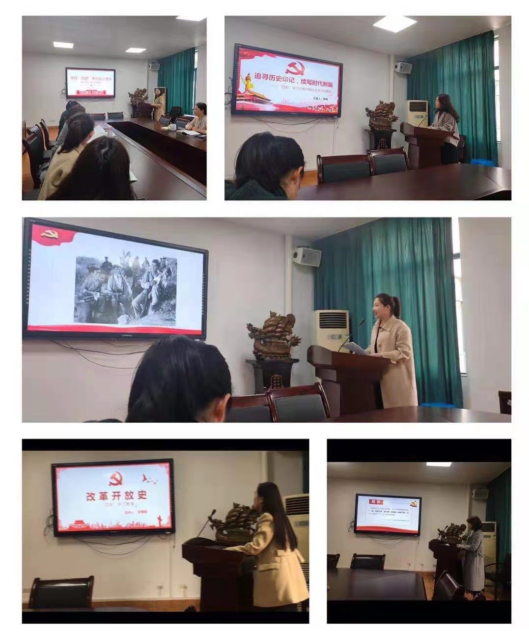 备课会以辅导员张迪的微党课《学习“四史” 牢记初心使命》开场,她讲述了为什么学习“四史”、学习“四史”最硬核的四大要求,并提出“四史”学习教育要从历史知识、历史经验、历史精神、历史方法这四个方面展开,在认知、情感、意志、行动这四个层面着力。辅导员夏冰凌带领老师们理清了党史发展脉络及学习意义,从新民主主义革命时期、社会主义革命和建设时期、改革开放和社会主义现代化建设时期四个阶段回顾了中国共产党在过去的100年里写下的光辉篇章。辅导员李萌以《追寻历史印记 续写时代篇章》为题,以“开篇”、“基调”、“探索”和“转折”为关键词,生动描述了社会主义发展史。学工办主任张婧婧则从改革开放的缘由与成就、改革开放成功的原因分析以及改革开放的未来思考三个方面讲述了改革开放史。最后,辅导员王茹新讲述了家乡铁道游击队的故事,通过讲解感人的红色微故事让大家体悟中国共产党成长的艰辛历程,并呼吁大家认真学习“四史”。