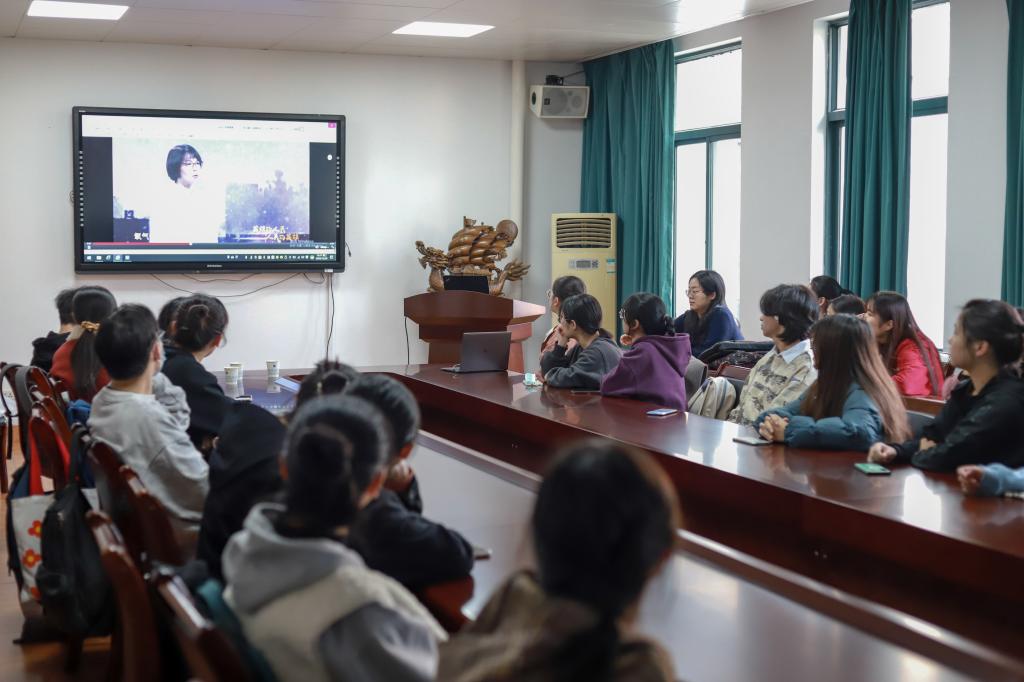 会上,蔡哲清和同学们分享了自己作为浙江省首批医疗队成员驰援武汉四院57天的经历。她告诉同学们,疫情初期武汉医疗物资极度紧缺,反复使用的口罩异味很重,我们依然要戴上异味很重的口罩。蔡哲清说,“赶往武汉的路上我们要换乘火车,着急搬运物资却忘记了自己的行李箱;到了武汉穿上防护服和隔离衣、戴上两层口罩,干什么都比平时费劲得多;我们也曾背着厚重的氧气瓶往返十九楼只为给呼吸困难的危重患者一次重新呼吸的机会……。” 抗“疫”过程中,诸如此类的困难还有很多很多。但是她认为,踏上逆行征程,穿上“一身铠甲”,就是使命和职责所在,虽艰难却荣光。