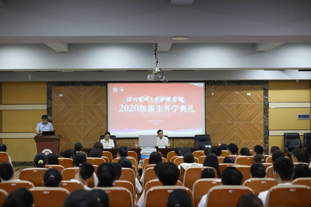 同学们入校前,是否听学姐学长说:“大学嘛,60分万岁”。然而,教师代表许芳芳老师用自己的经验告知同学们:“医学,没有60分!护士是治病救人的职业,来不得半点马虎”。她嘱托同学们要谨遵“勤勉、仁爱、慎独、求真”的院训,怀着一颗敬畏之心,在医学道路上披荆斩棘、一路向前!院学生团委书记李文佳同学作为老生代表,在学习,科研和学生工作等方面为新生分享她的一些经验与感悟。2020级助产1班新生代表倪裔文在发言中,表示刚来到校园,就感受到各位老师无微不至的关怀,如家一般的温暖,作为一名新生立下誓言“今天我们为温医骄傲,明天就要让温医为你我而自豪!”
