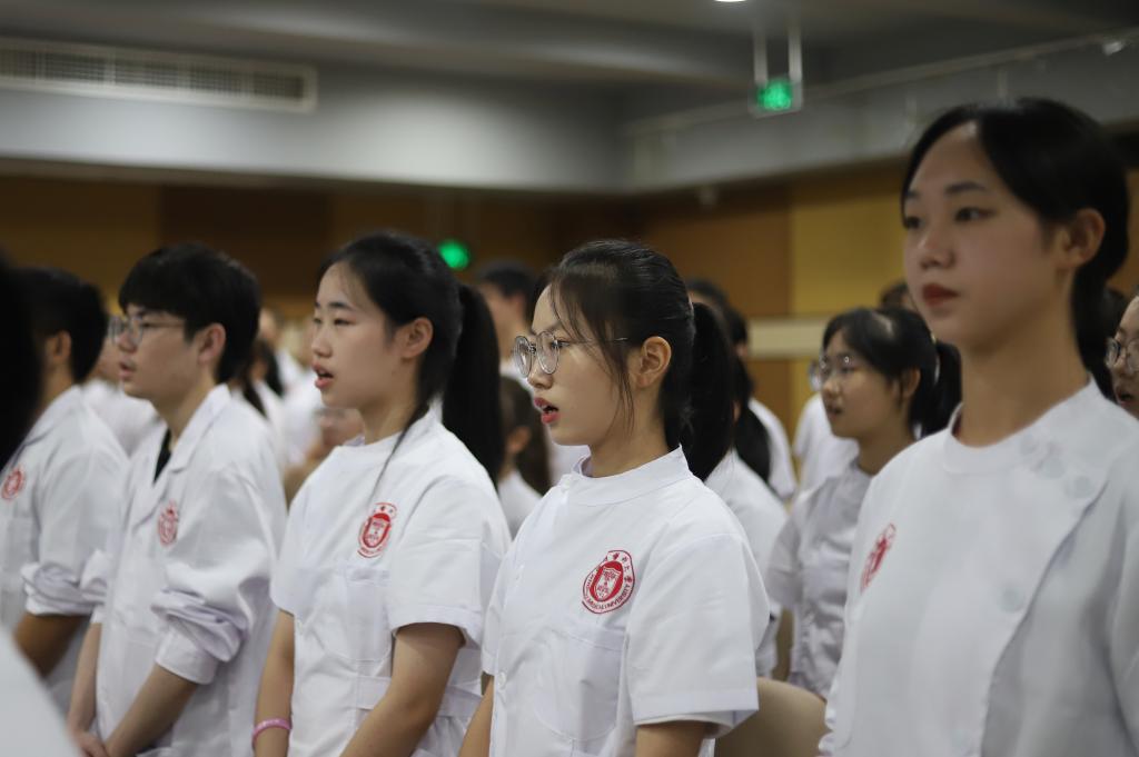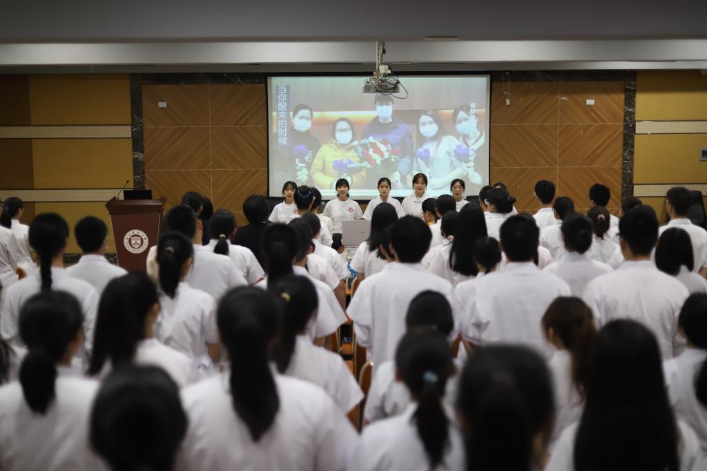 “中国护士,大爱无疆,用奉献浇灌生命,让青春永远绽放;中国护士,大爱无疆,用生命守护生命,让真情地久天长……”典礼在悠扬动听的《中国护士之歌》中结束。开学典礼上,那一身身洁白无暇的护士服,一双双坚定清澈的双眼都仿佛昭示着对护理这份专业的无限期许。期待2020级新生们未来都能成为生命健康的守护者,不断弘扬南丁格尔精神,为祖国医药卫生健康事业贡献自己的力量。