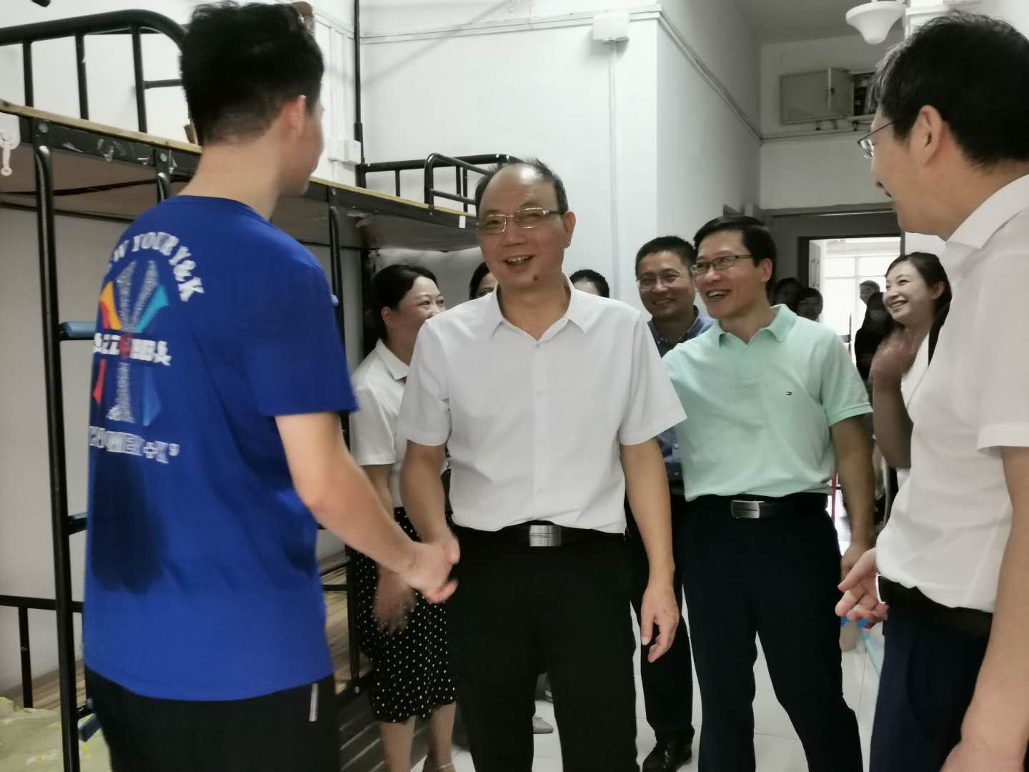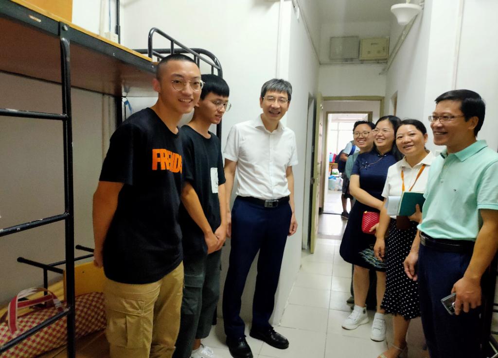 上午10:00,校党委书记吕一军、院党委书记李旭东、院长陈成水及班子成员、学院学工办、团委老师和新生辅导员到达迎新现场和学生寝室看望新生。“老家是哪里的?”“东西收拾的怎么样了?”,校领导吕一军亲切询问新生勉励大家说:“爸妈不能陪同进校,有好处也有坏处,坏处是要自己整理,好处是这样可以让同学们尽快的独立起来,适应大学生活,融入大学校园。”当吕书记看到taptap点点今年新生中不乏男孩子的身影,很是赞赏说到:“护理专业不是仅仅适合女孩子,男孩子也非常的适合,在医院里男护士是非常稀缺的,医院里有很多重要的特殊的护理岗位”。新生们热情地和老师们打着招呼,“我家就在温州,我自己选的护理专业,很开心能做一名护士。”“还没参观过我们学校呢,我要抓紧去看看!”同学们纷纷表达来到温医内心的喜悦和憧憬。