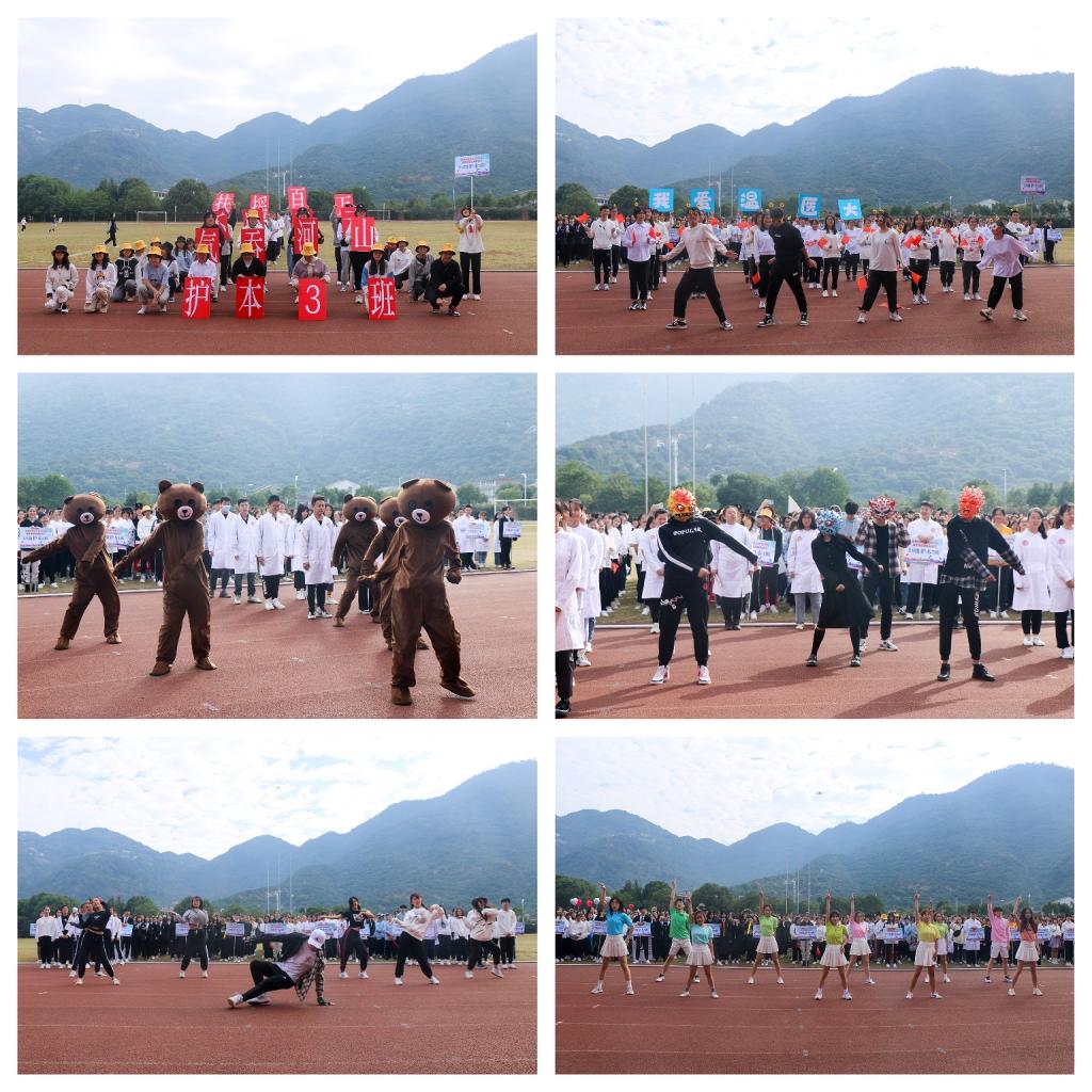 “大风泱泱,大潮滂滂。专一专一,勇夺第一。”“十二十二,说一不二。放眼温医,舍我其谁”“青春如火,超越自我。四班精英,勇夺第一。”……伴随着响亮的班级口号,20个新生班级方队斗志昂扬得进场了。来到主席台前,有的班级通过朗诵展现新生的雄心壮志,有的班级通过热舞展现新生的青春力量,有的班级则穿上可爱的布朗熊玩偶服热情得向在场的师生们问好,也有的班级邀请到导师参与方阵展示,成为跑道上一道亮丽的风景线。每一个新生班级都创意十足,洋溢着青春似火的朝气。随后,学院艺术团带来的舞蹈《我们都是追梦人》更是将趣味运动会气氛推向了高潮。
