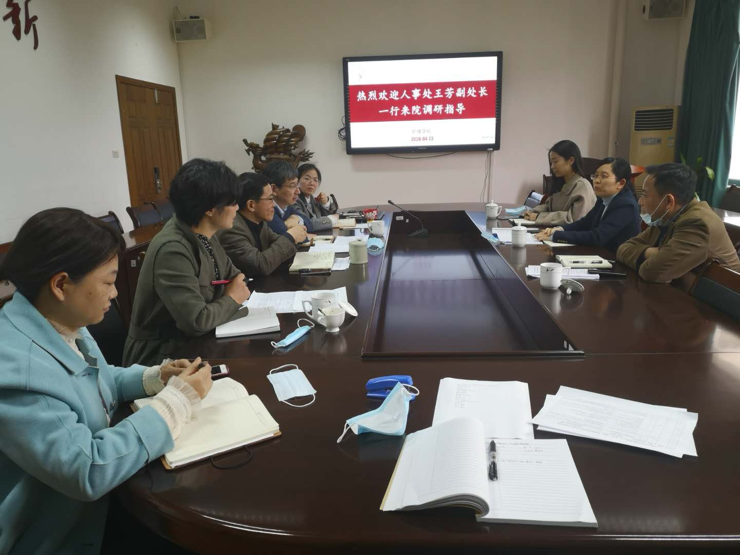 4月23日下午,校人事处副处长王芳等一行3人来taptap点点就人才引进与培养工作走访调研。学院领导班子成员与会,会议由院长陈成水主持。