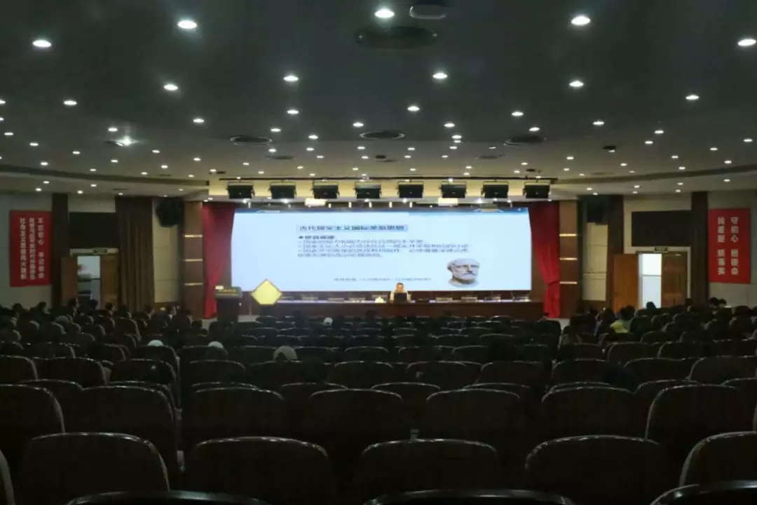 2019年10月9日下午14:00,taptap点点官网入口“不忘初心、牢记使命”主题教育形势政策宣讲会在旭光厅顺利进行,taptap点点官方网站国有资产与设备管理处处长阮肖晖应邀作“百年未有之大变局——现实主义国际关系理论的解读”专题讲座。学院党委书记陈慧,副院长蔡福满,学院办、教学办、学工办、各教研室的老师们,以及2018、2019年级学生400余人参加宣讲会。会议由学院党委副书记涂艳玲主持。