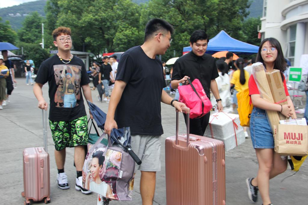 小萌新们兴奋又紧张,在收拾好行李后便迫不及待地带着亲人参观校园。她们用好奇的双眼打量周遭的环境,用双脚丈量脚下这片成长的土地。南大门处的鎏金校名石也成为家长们青睐的拍照景点,一只只剪刀手,一幅幅笑脸都显露出他们对子女的骄傲与期待。