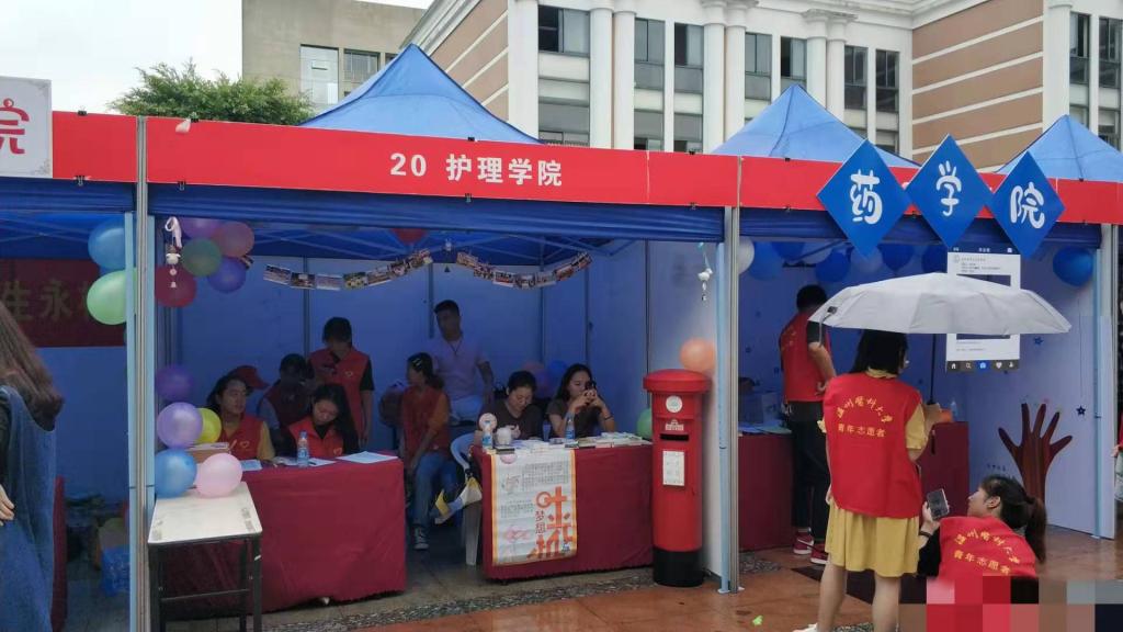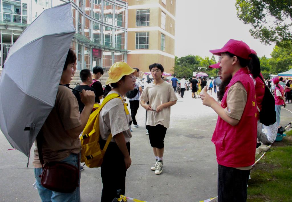 在人群中最闪耀的还是那一位位身着红马甲的白鸽志愿者。她们早早地在同德楼前的广场上搭起帐篷,欢迎小萌新们的咨询;她们在路旁,头顶风雨与烈日,坚守岗位,为新生提供最热情的服务。每一次侧耳倾听,每一次认真指引,每一次微笑与鼓励,都表示了学姐学长们对小萌新的热烈欢迎。