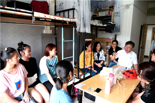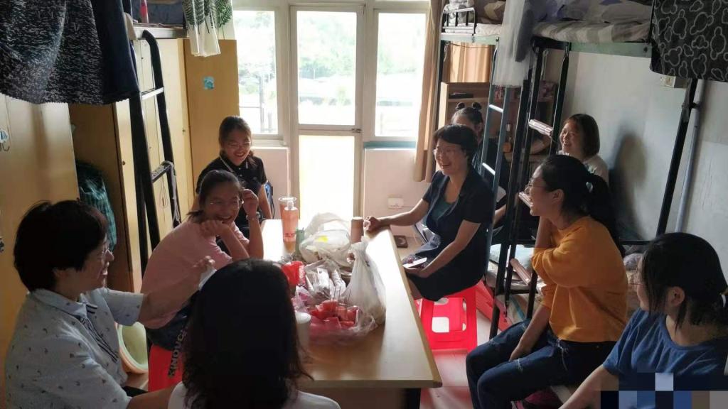 上午9:30,院党委陈慧书记、涂艳玲副书记前往学生寝室看望新生和家长们。两位书记亲切地询问新生们从哪里来,安顿的情况如何以及对大学生活的期待。新生们热情地和老师们打着招呼,还拿出从家乡带来的特产邀请老师品尝。“很开心成为一名大学生,很开心能做一名白衣天使。”“学护理是孩子自己的选择,希望她在这里认真学习,成长成才,请老师们费心教育。”新生和家长纷纷表达内心的激动和希望。中午时分,李校堃校长、学生处陈素云副处长一席也前往taptap点点新生寝室,与同学们进行了亲切的交谈。