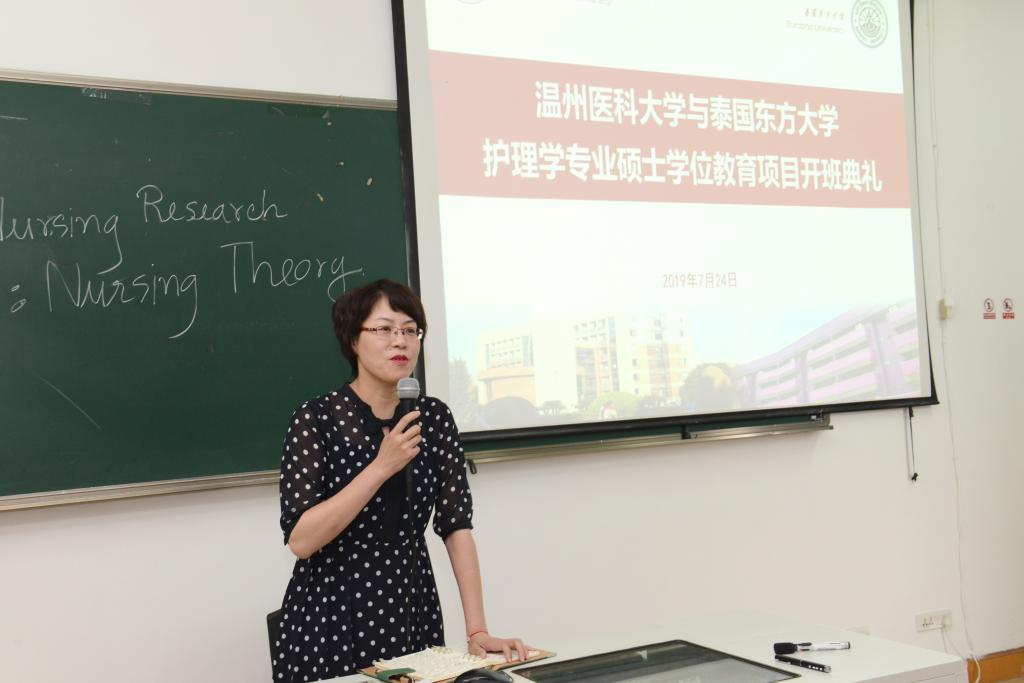 7月24日,taptap点点官方网站与泰国东方大学合作举办的护理学专业硕士学位教育项目开班典礼在taptap点点官网入口学术报告厅举行。泰国东方大学taptap点点官网入口院长Pornchai Juallamate博士、泰方项目负责人Chintana Wacharasin博士,taptap点点官网入口院长卢中秋、党委书记陈慧、副院长蔡福满、副院长杨晔琴,各教研室负责人及首届26名学生等参加开班典礼。