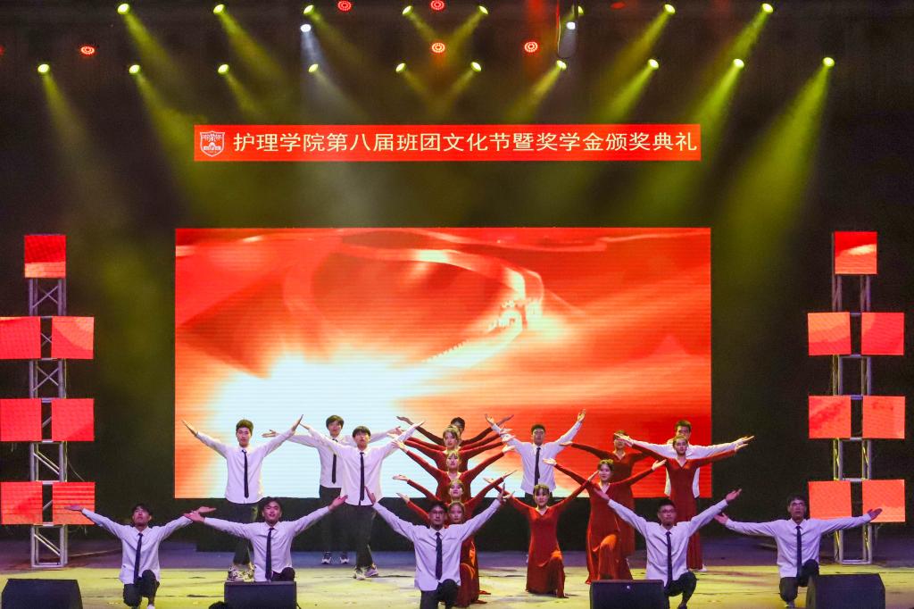 随后,各班级、团支部以及学院艺术团选送的精彩节目闪亮登场。19护本7班《少年中国说》以五四运动为背景,展示了无论是在革命的时代里,和平的时代里,亦或是如今的新时代里,都有优秀奋发的少年承担时代和历史的使命,爱国、护国、强国。