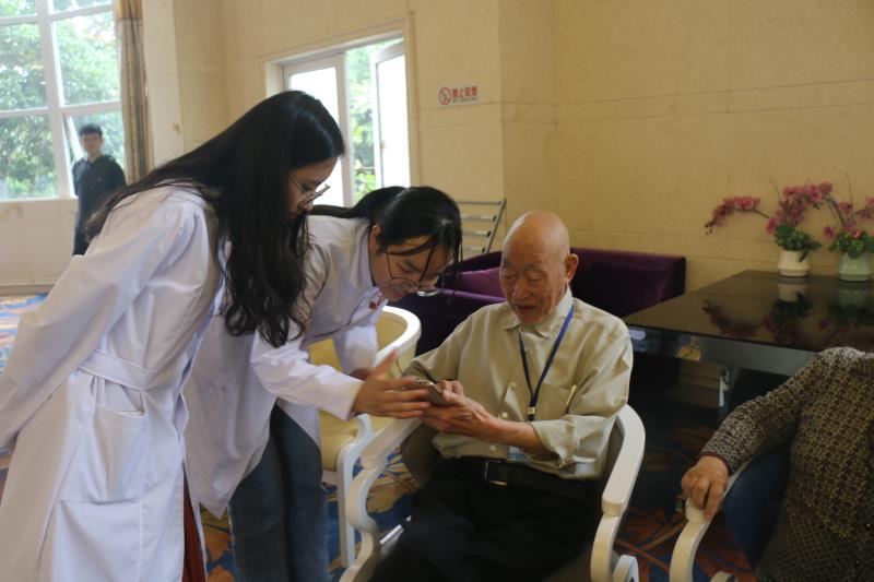 之后,他们为公寓的老人们测量血压、血糖,并做健康咨询与宣教,叮嘱老人们保持良好的生活习惯。对于老年高血压患者,师生们重点提醒定时吃降压药。对于高血糖患者,师生们则重点叮嘱饮食上的注意事项。针对老人们提出的问题,师生们耐心地进行了一一解答。
