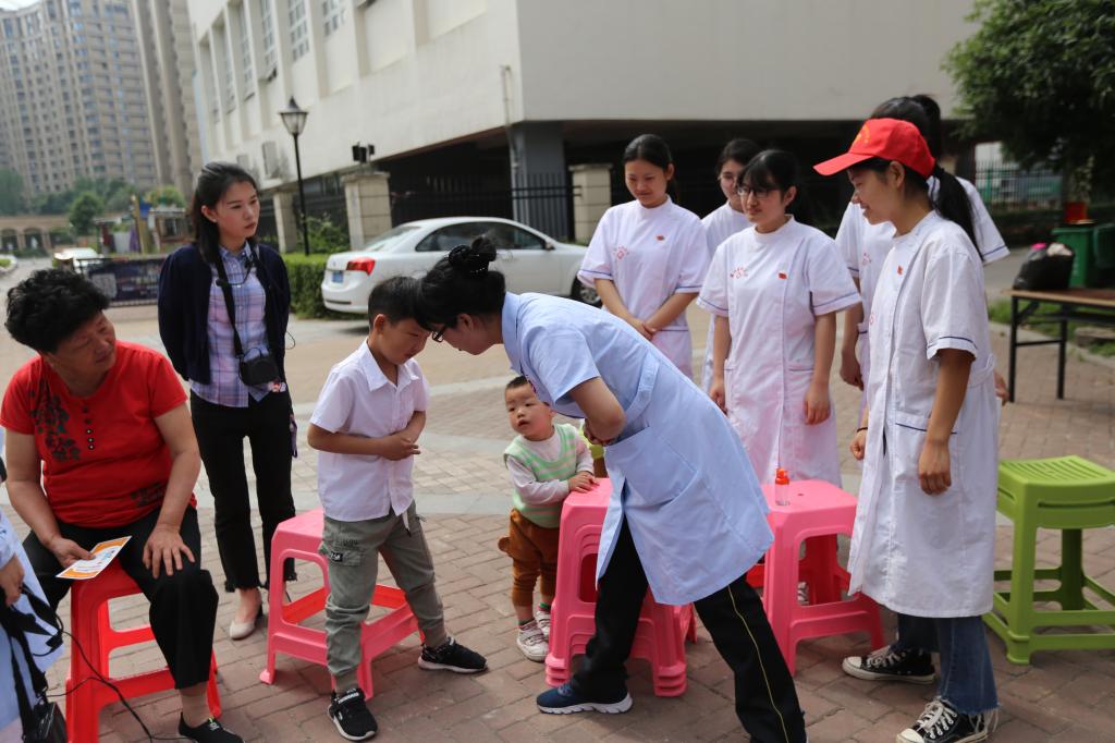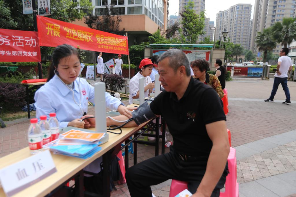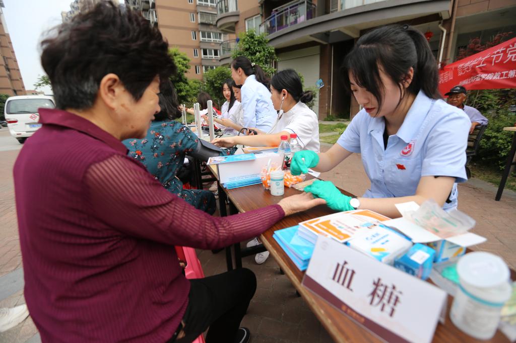 健康体检的现场同样十分热闹,董超群老师和5名学生党员为居民们测量血压,陈晓琳老师和潘艳老师则为居民做血糖检测,还耐心地回答居民们的问题并细心叮嘱他们要保持良好的饮食、生活习惯。考虑到社区居民以老年人群为主,师生们特意提前印制了血压、血糖管理手册,在居民们走的时候发放给他们。手册中详细地讲解了日常饮食中需要注意的事项,“我要是记不清楚了,就看看小册子,年纪大了,忘性大。”一位老阿姨高兴地说。