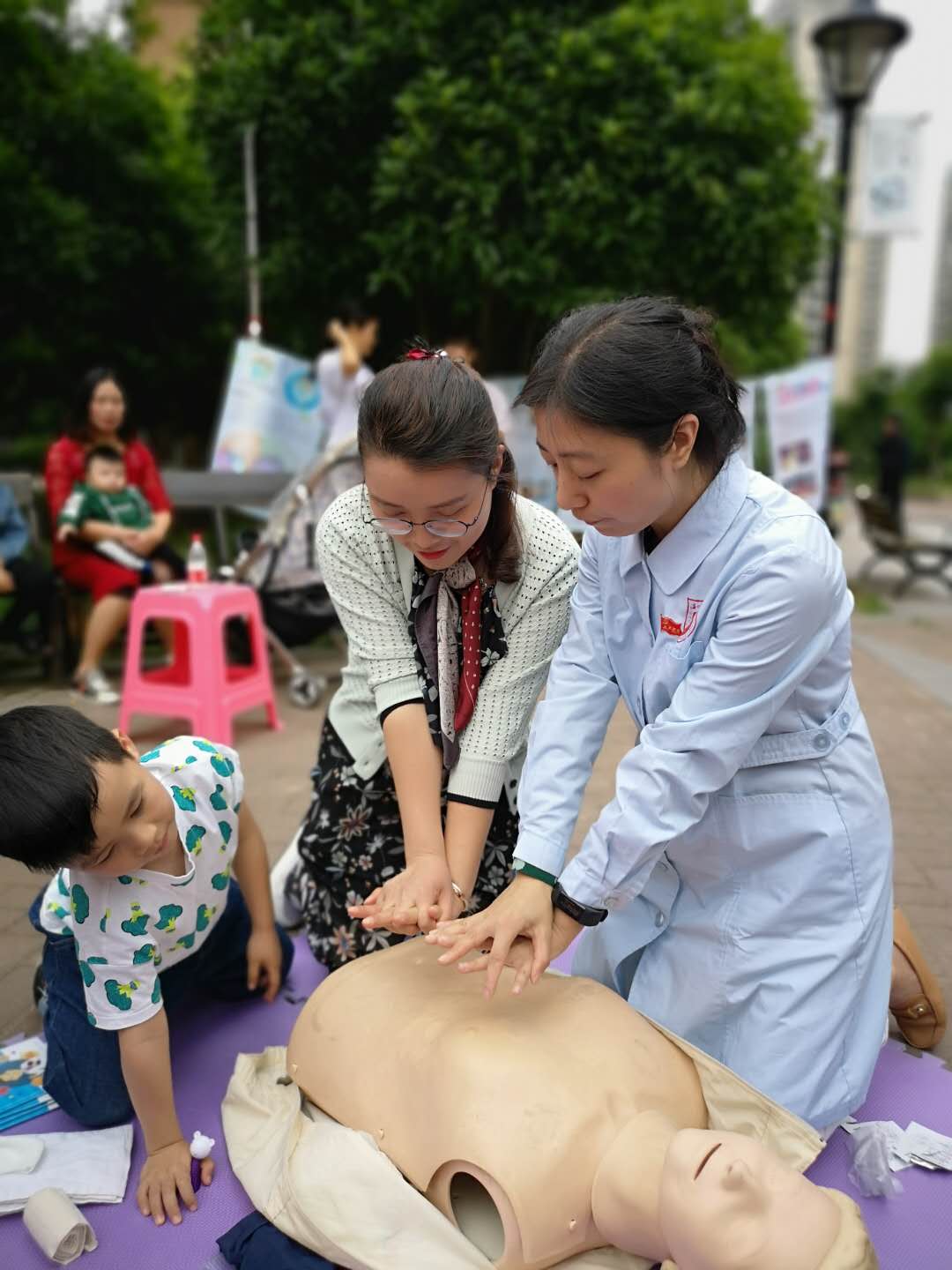 在社区广场上,吴永琴老师、郑琼老师分别讲解了心肺复苏、异物梗阻、包扎等急救技能并现场进行了示范教授。“第一次参与这样的活动,我收获挺大的,要是不小心受伤了,也知道该怎样处理了。”“每个人都应该会心肺复苏,现在溺水、窒息、心脏病突发或其他意外事件时有发生,在遇到他人有危险的时候,第一时间科学施救,对抢救生命有着非常重要的意义。”社区居民们高兴地说。经过一个多小时的培训,他们掌握了基本的急救技能。
