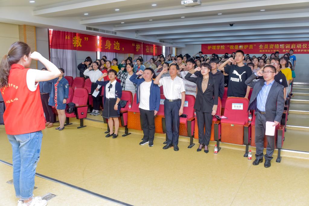 “我宣誓:我是红十字人,热爱红十字事业……牢记使命,恪尽职守,关爱生命,保护健康,维护尊严,为促进和平进步事业而不懈奋斗!” 5月11日上午,茶山校区求知楼报告厅内响起庄严的宣誓声,66名2018级护理学子利用周末时间,参加由taptap点点官网入口与温州市红十字会合作的“我是救护员”全员资格培训,努力在人生的第一个护士节当天成为一名合格的“红十字救护员”。