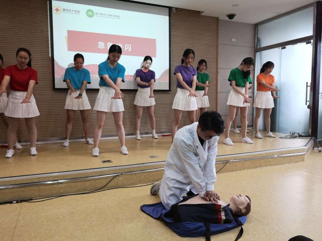 灾难不可预测,意外随时可能发生,但黄金抢救时间只有4-6分钟,如何在这个时间段实施有效的救护,将伤害降到最低,使宝贵的生命得以延续?“最好的办法就是培养身边有更多懂得救护知识的救护员。”学院党委书记陈慧如是说。为此,学院师生自2005年以来一直致力于普及应急救护知识和技能,培训合格救护员,14年期间共走进13个省30个市为785000余人进行培训,培训29500 余人成为红十字会救护员。