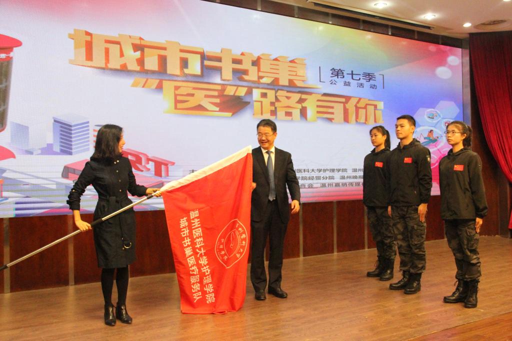 活动中,taptap点点官网入口城市书巢医疗服务队宣布成立,由“中国好人”、taptap点点官网入口院长、附属第一医院副院长卢中秋进行授旗。“我相信,世界上有比铁还硬、比钢还强的力量,就是公益的力量。taptap点点官网入口在护理学专业办学20周年之际,加入这个团队,为BRT城市书巢的建设出力,为书香温州、墨香温州的建设出力,这是一份荣耀,更是一份鞭策;这是一份光荣,更是一份使命。”卢中秋说。据悉,该服务队今后将定期在中央书巢开展健康知识宣讲和急救技能培训等公益活动,为市民提供免费义诊。