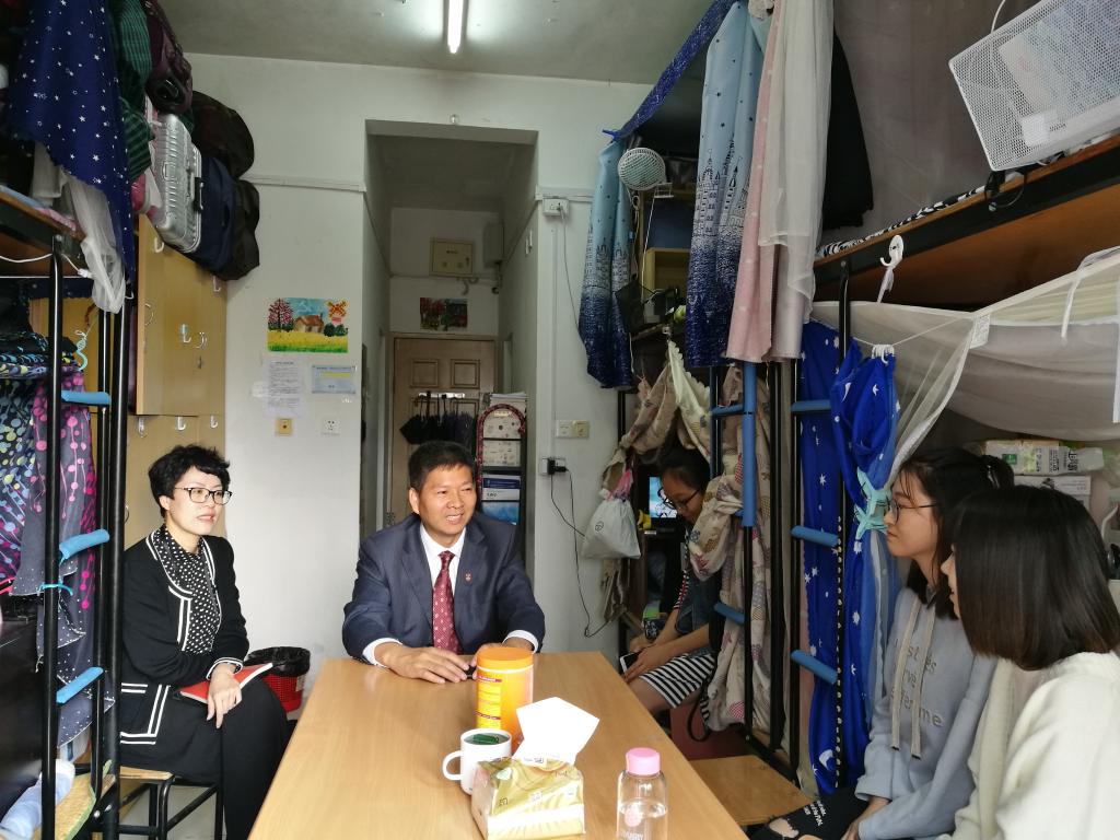 10月31日上午,校党委委员、组织部部长庄兴忠走访taptap点点官网入口学生寝室,学院党委书记陈慧、党委副书记涂艳玲、辅导员等陪同。