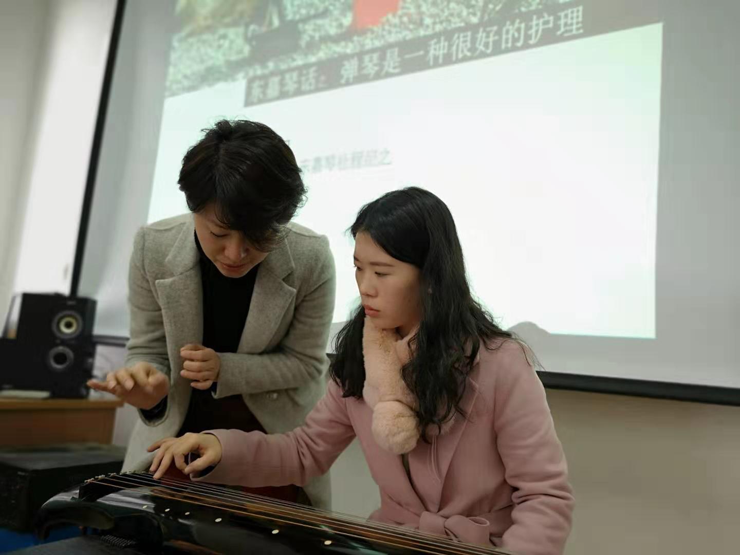 活动中,女教职工们品尝芥菜饭、水果等美食,互相交流和分享节日带来的喜悦,气氛温馨、轻快。学院邀请程纪之老师为大家进行古琴理论讲解和演绎讲座——《琴声,也是一种很好的护理》,让大家接受传统文化的熏陶。